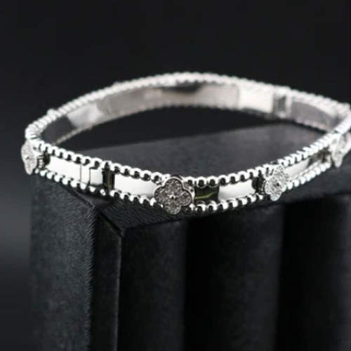 دستبند النگویی نقره زنانه ونکلیف ترکیب تراش و صدف