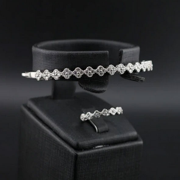 ست دستبند النگویی و انگشتر نقره ونکلیف زنانه